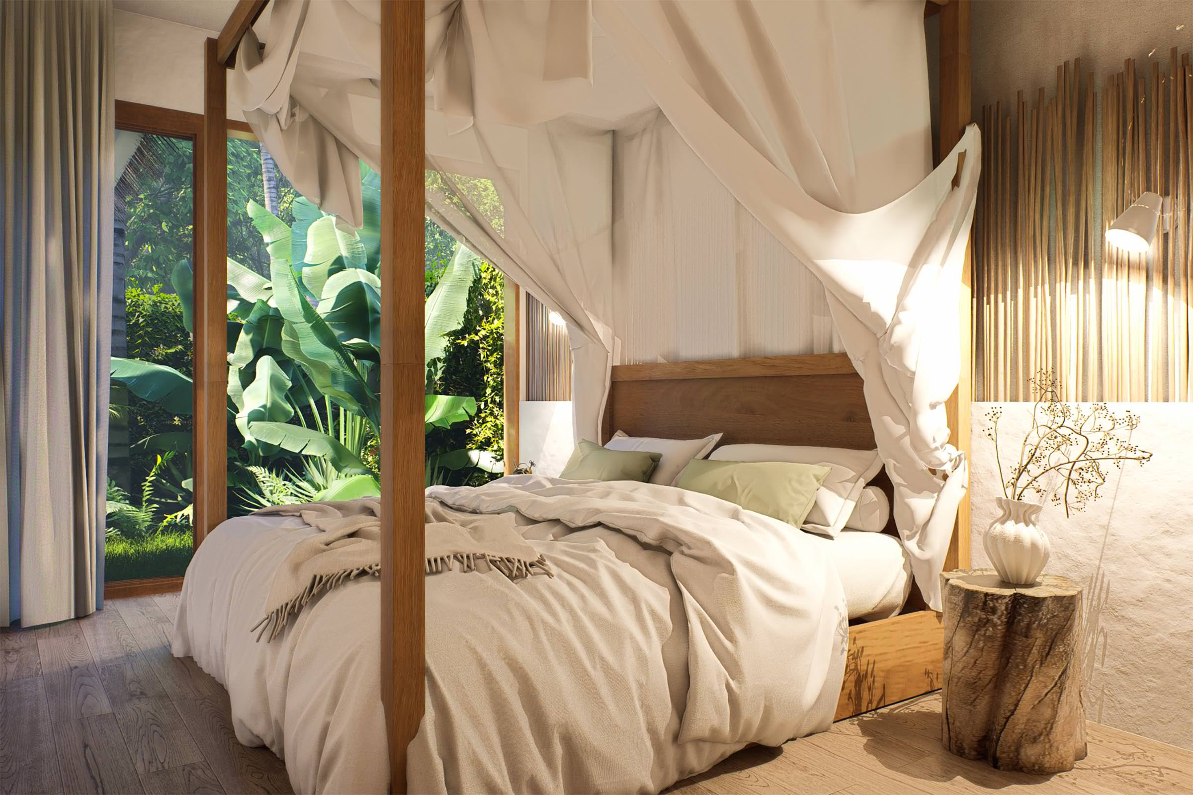 - Master bedroom overlooking lush, tropical garden