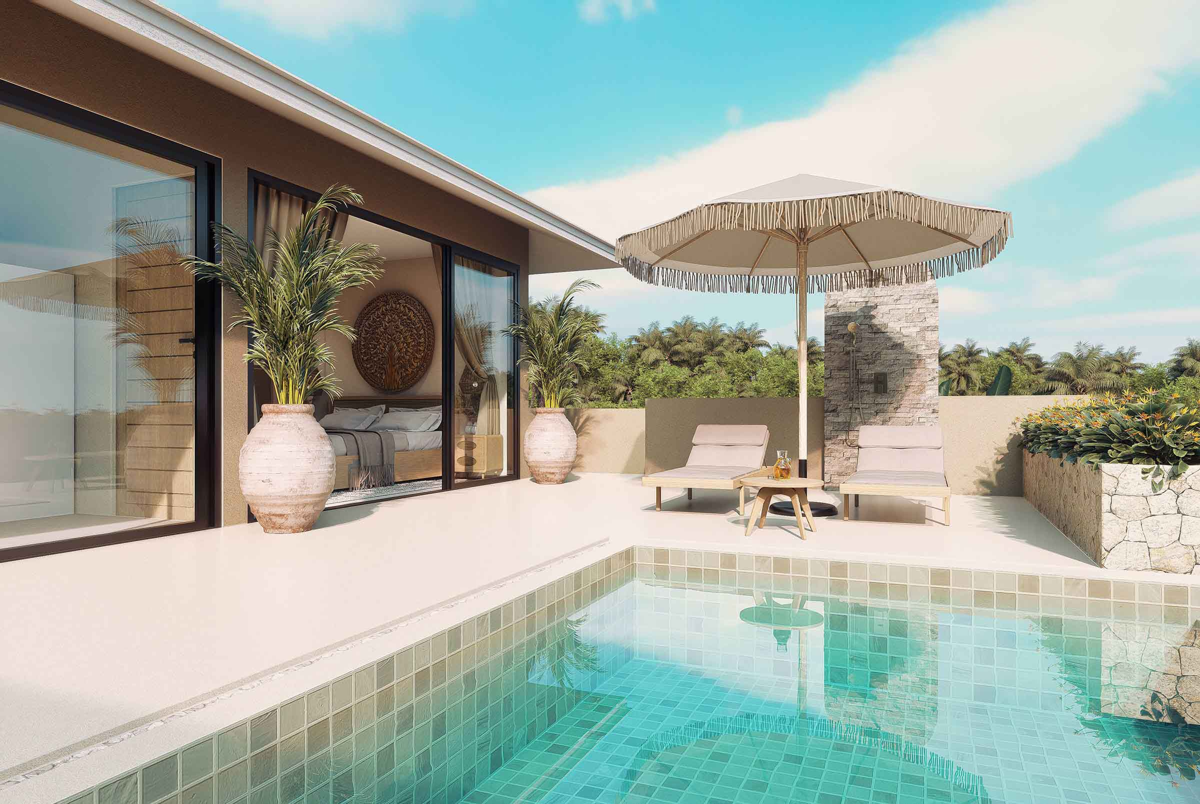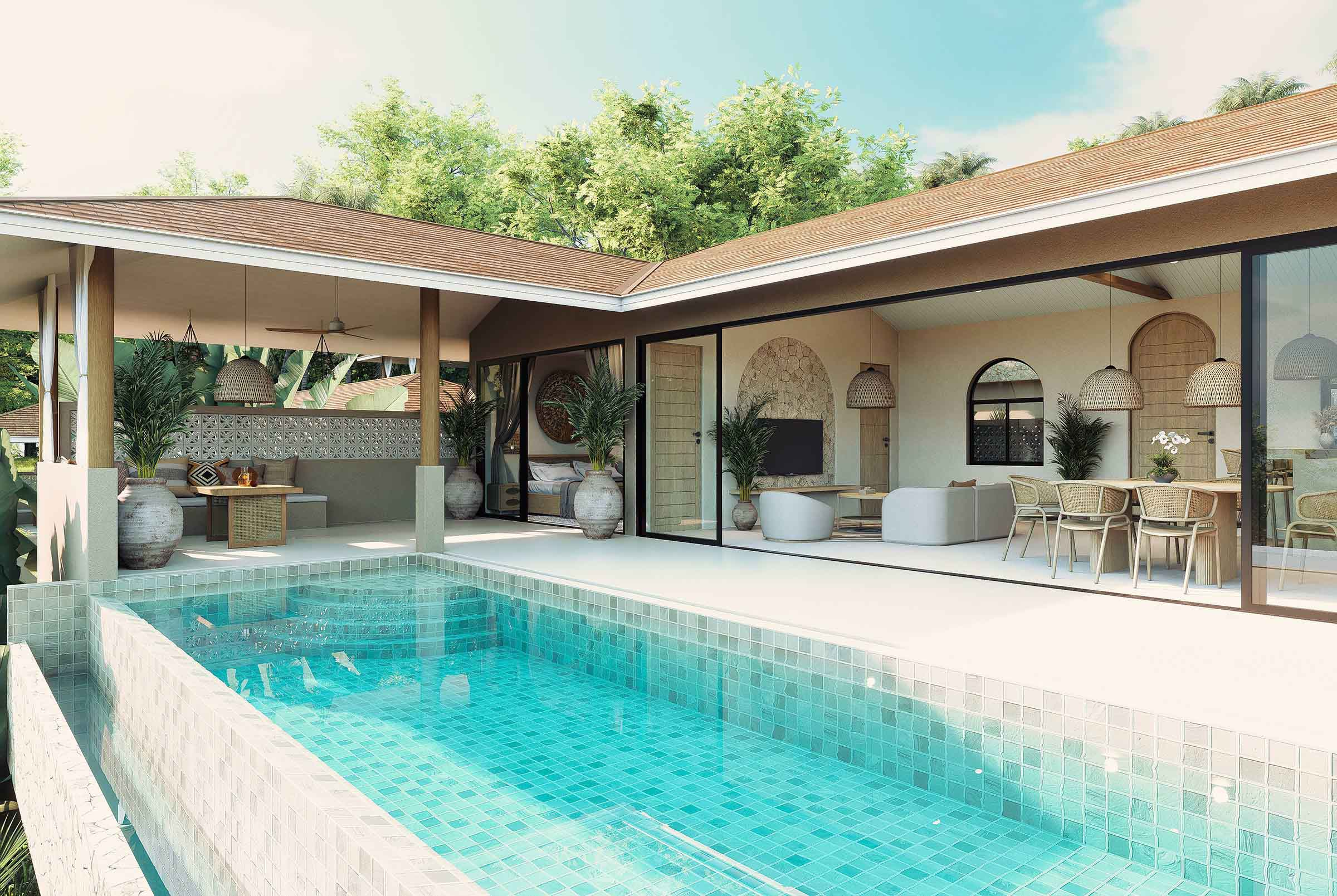 The 3 Bedroom Villa is well designed for year round living and features a very spacious living area, a large pool terrace plus a generously covered outdoor sala.