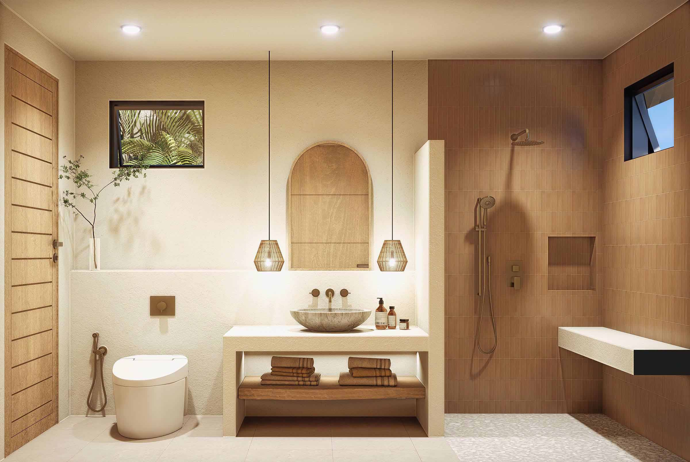 - 3 Ensuite bathrooms each with large vanity, WC and large shower with bench seat