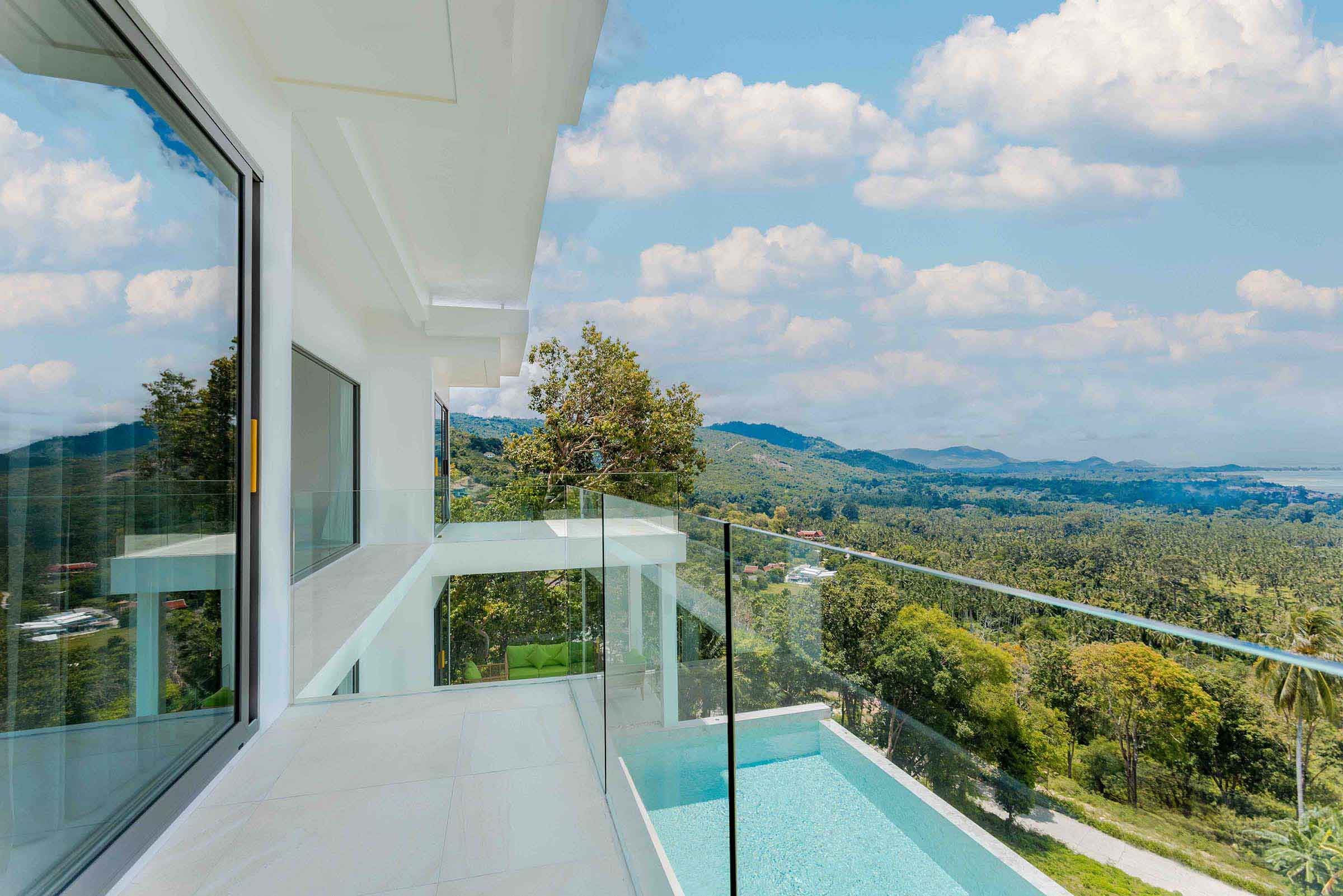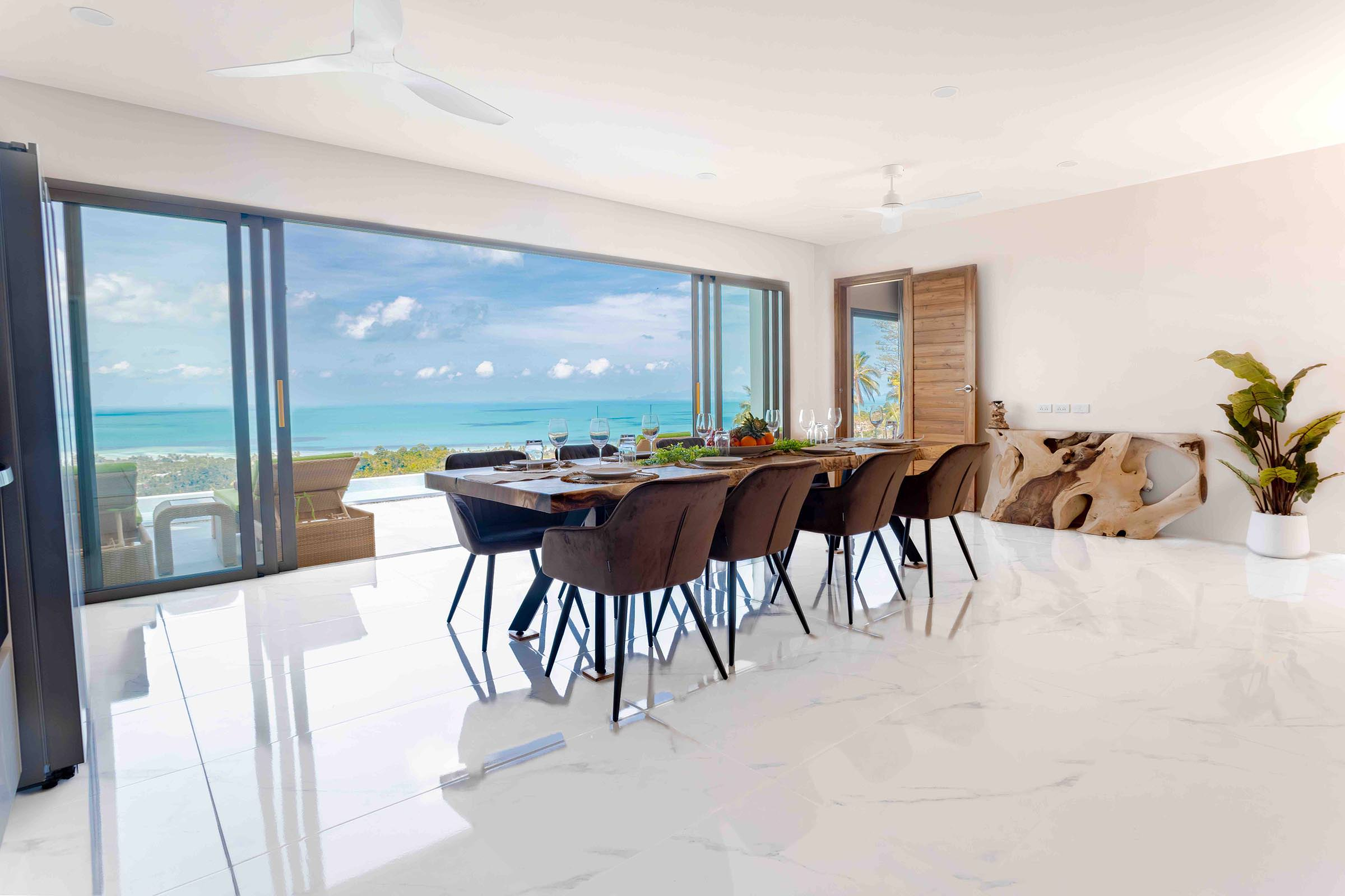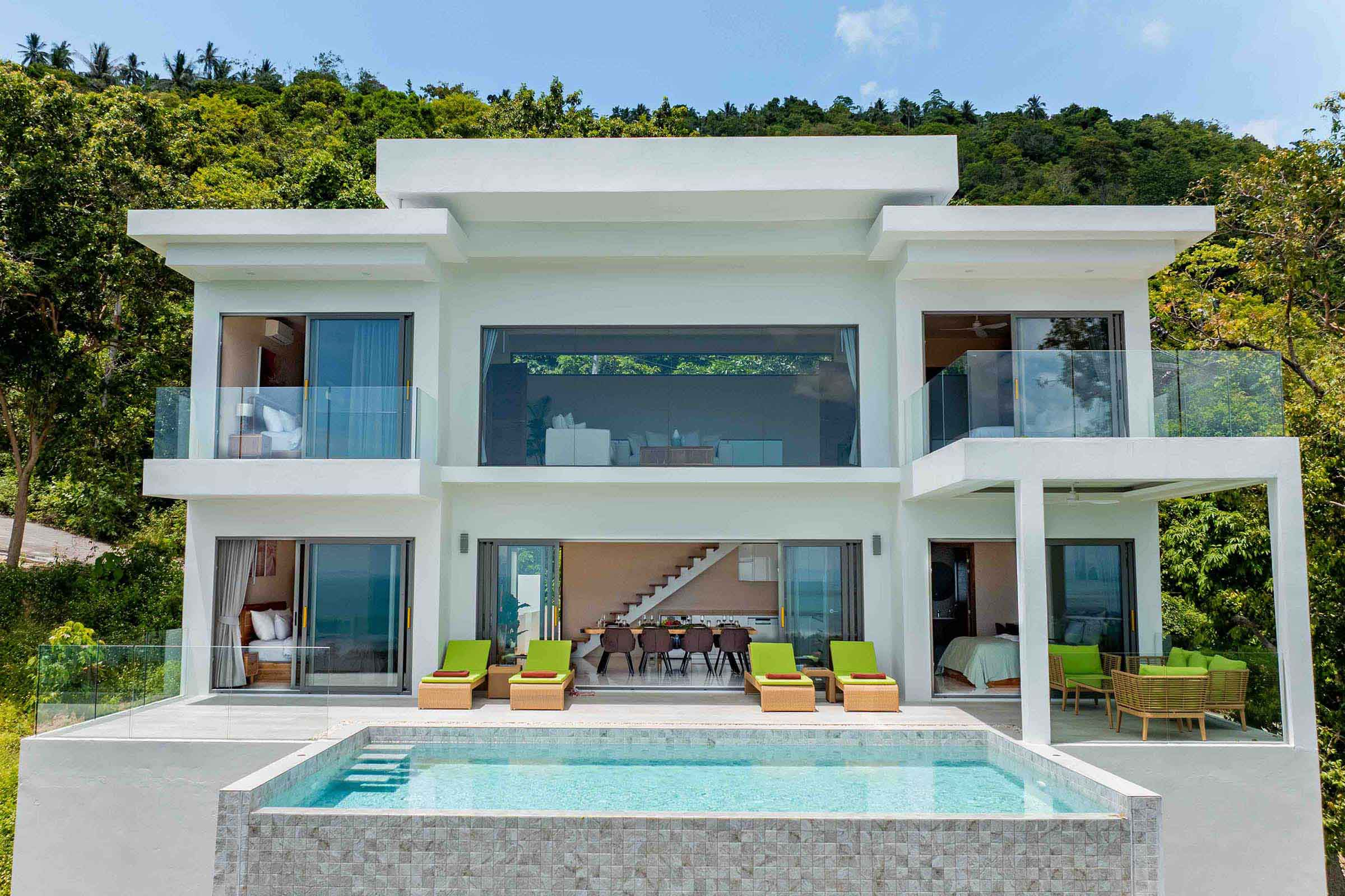 Panoramic sea views and pool lounge at a hillside villa in Ban Makham, Koh Samui