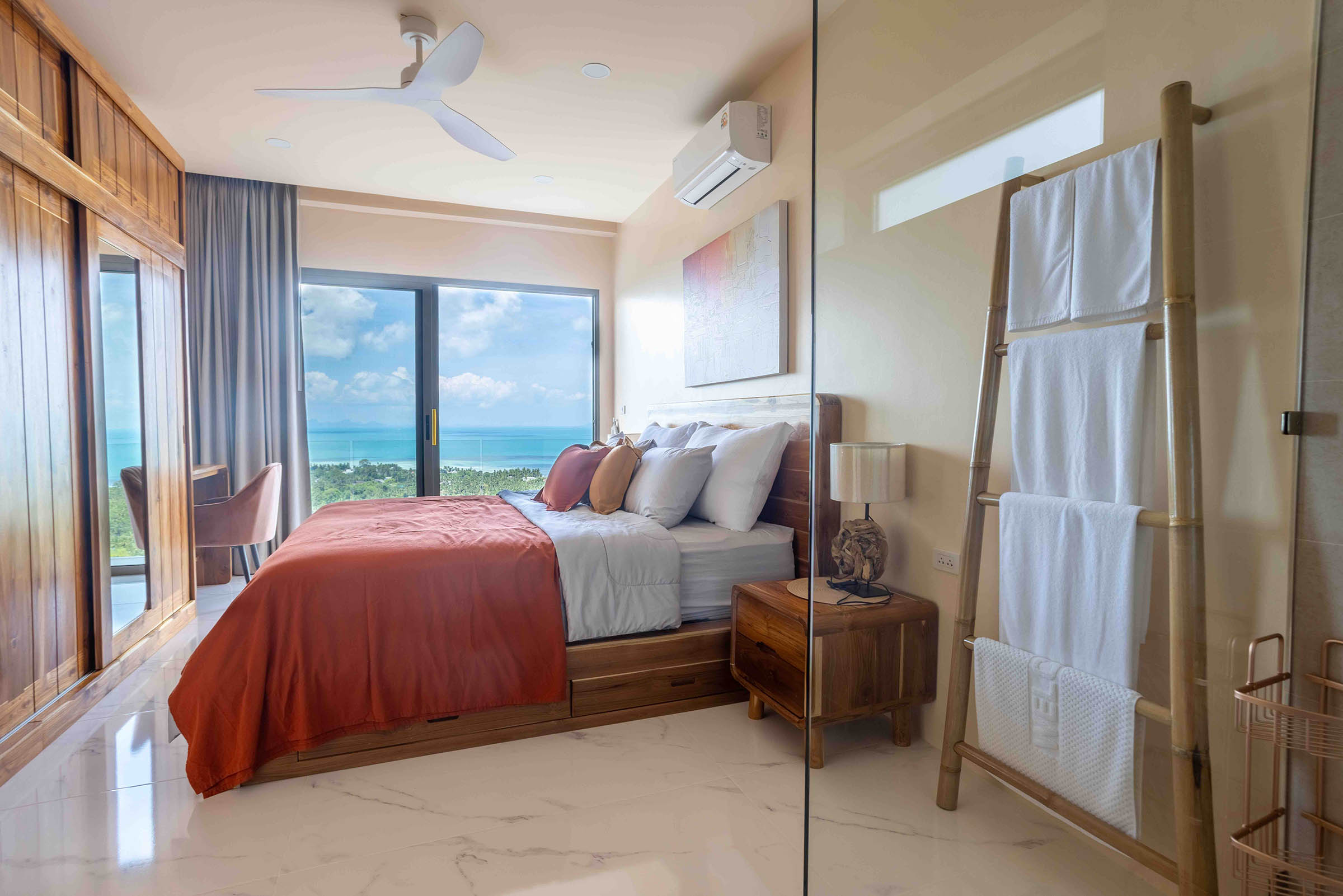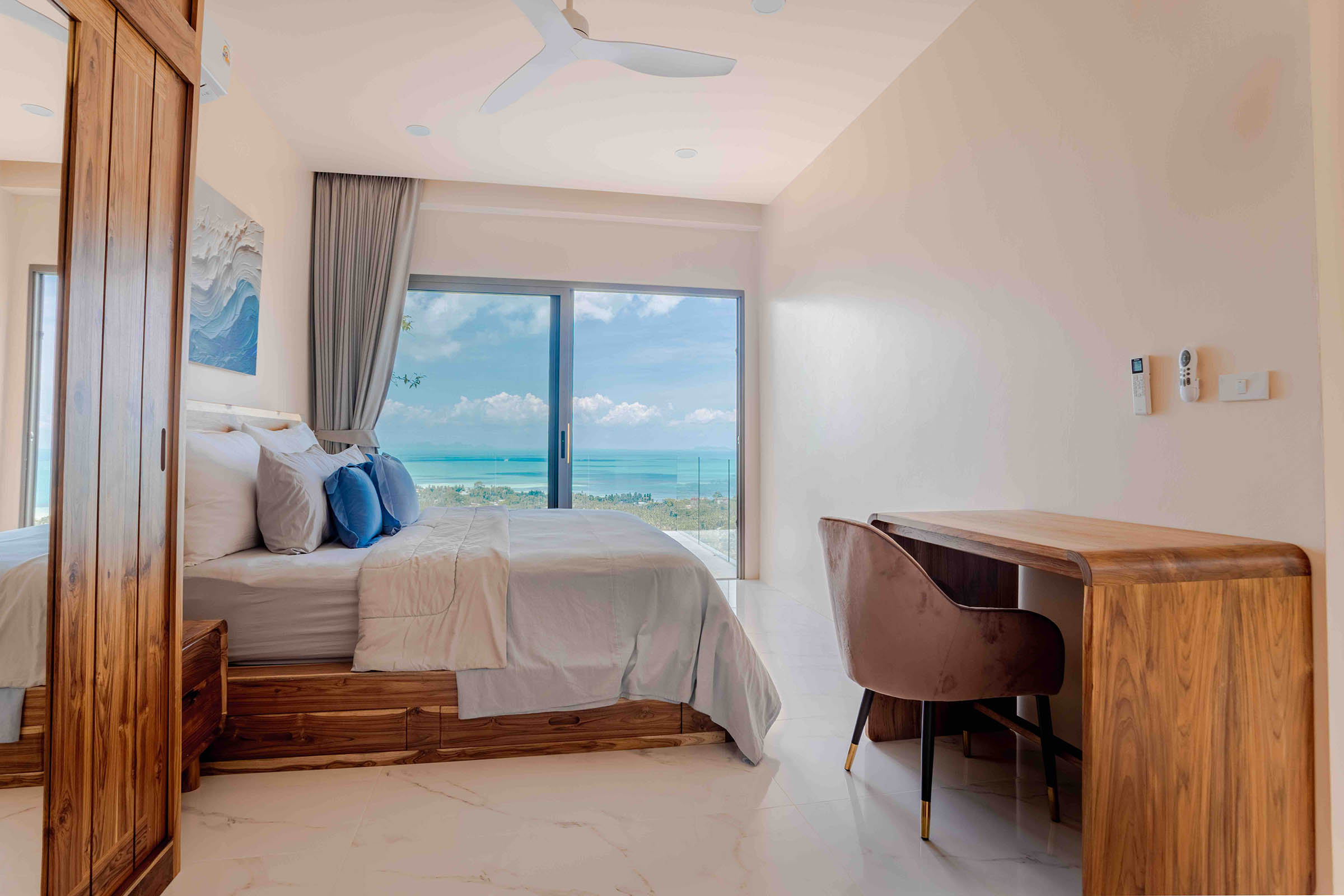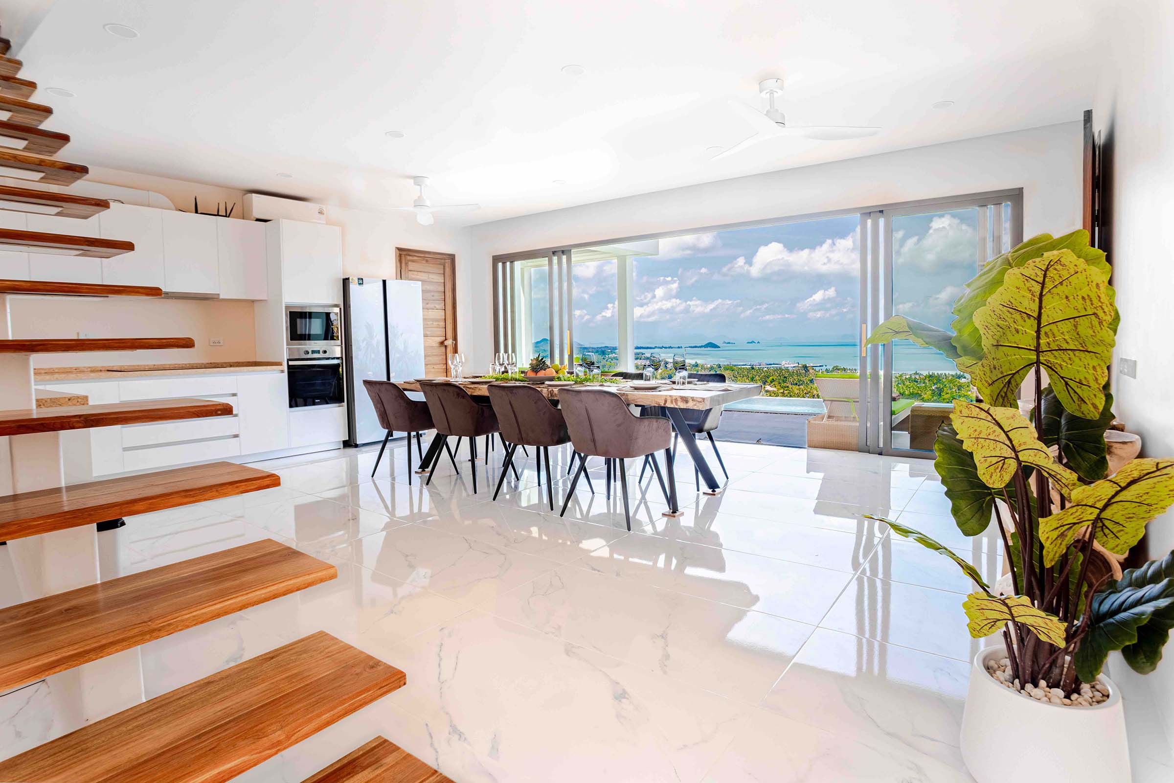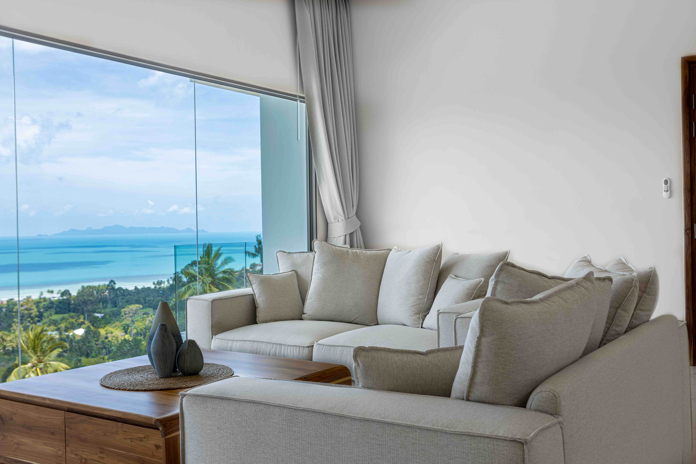 Panoramic sea views and pool lounge at a hillside villa in Ban Makham, Koh Samui