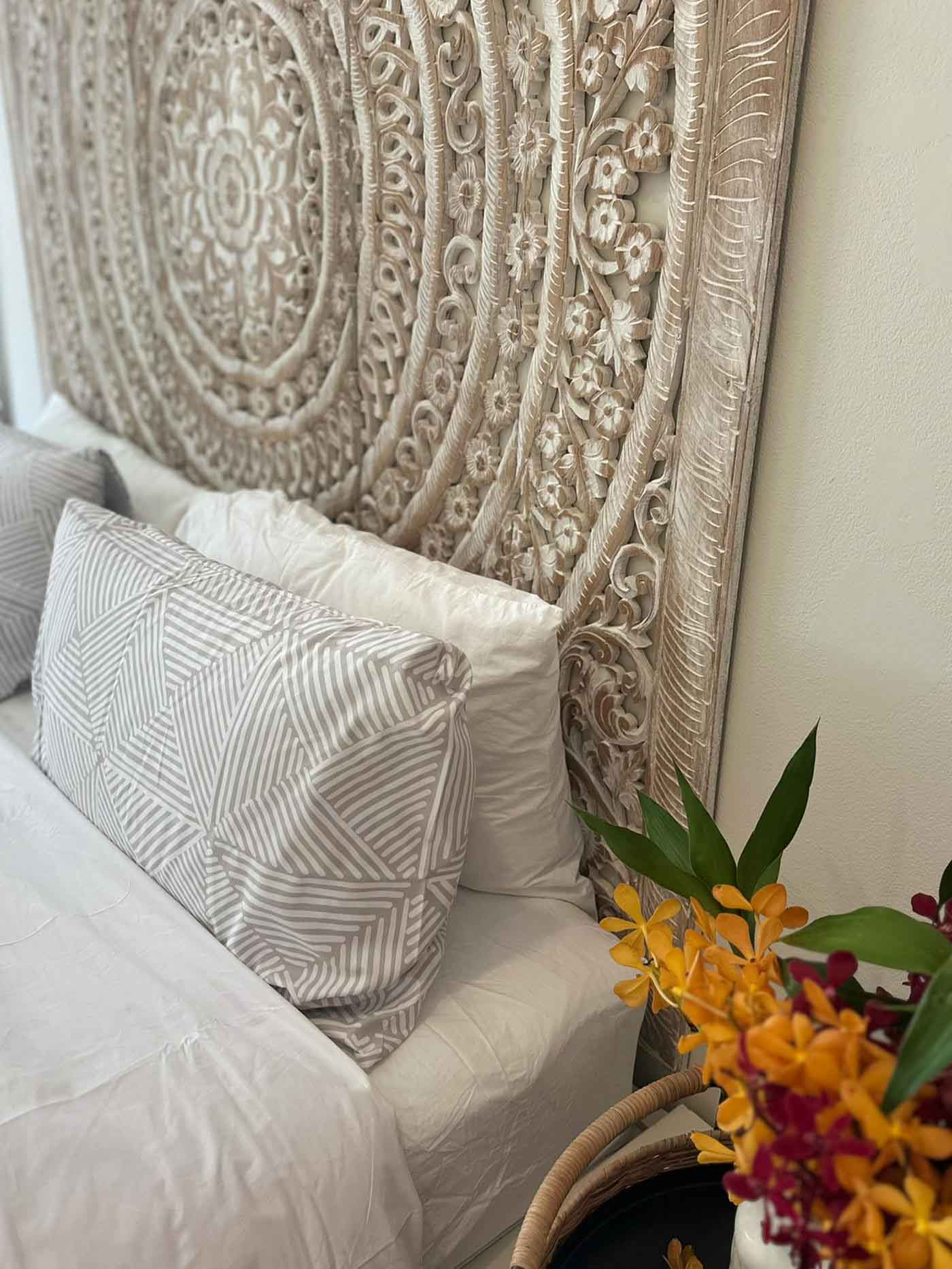 The interior features lots of beautiful teak wood carvings made by local artists.